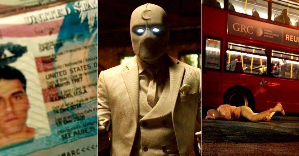 当史蒂文版(注意不是马克版)的月亮骑士和蕾拉与豺狼战斗时,背景是一辆红色的伦敦巴士。旁边的广告牌上写着“GRC”的广告。全球遣返委员会(Global Repatriation Council)在《猎鹰与冬日战士》中被引入,这个组织主要负责处理灭霸的响指事件的后果和五年后失踪人口突然返回的应对。《月亮骑士》第二集的GRC海报是这部迪士尼+剧与漫威宇宙的第一次正式的联系,标志着这个超级英雄角色终于在更广泛的系列故事中有了确切的基础。